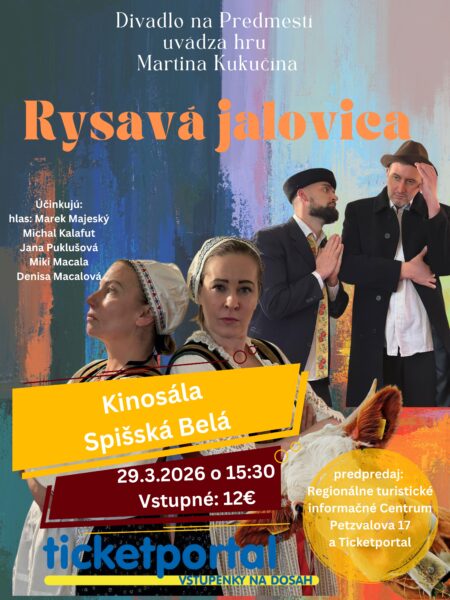 Divadelné predstavenie Rysavá jalovica, 29.3.202617. marca 2026Pozývame vás na divadelné predstavenie! Divadlo na Predmestí prináša na javisko známu hru Martina Kukučína Rysavá jalovica – príbeh plný…
