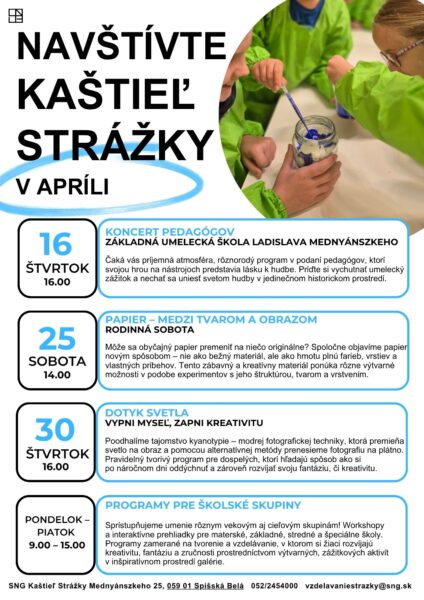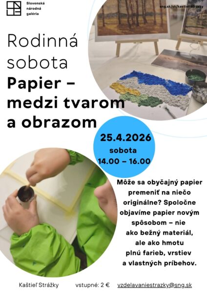 SNG Kaštieľ Strážky – Rodinná sobota 25.4.2026 9. apríla 2026Môže sa obyčajný papier premeniť na niečo originálne? Spoločne objavíme papier novým spôsobom – nie ako bežný materiál, ale ako…