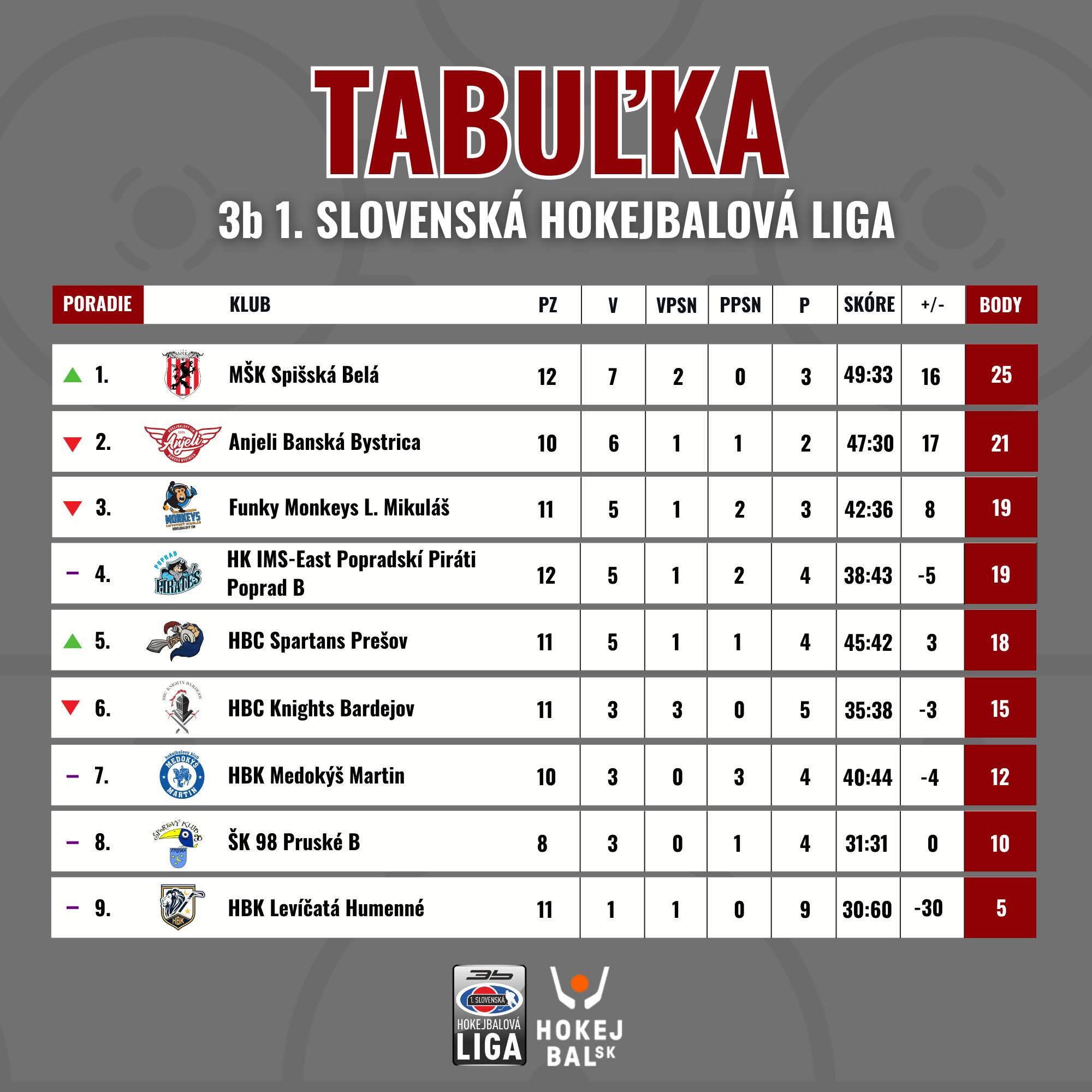 MŠK Spišská Belá priebežne vedie tabuľku 1. slovenskej hokejbalovej ligy