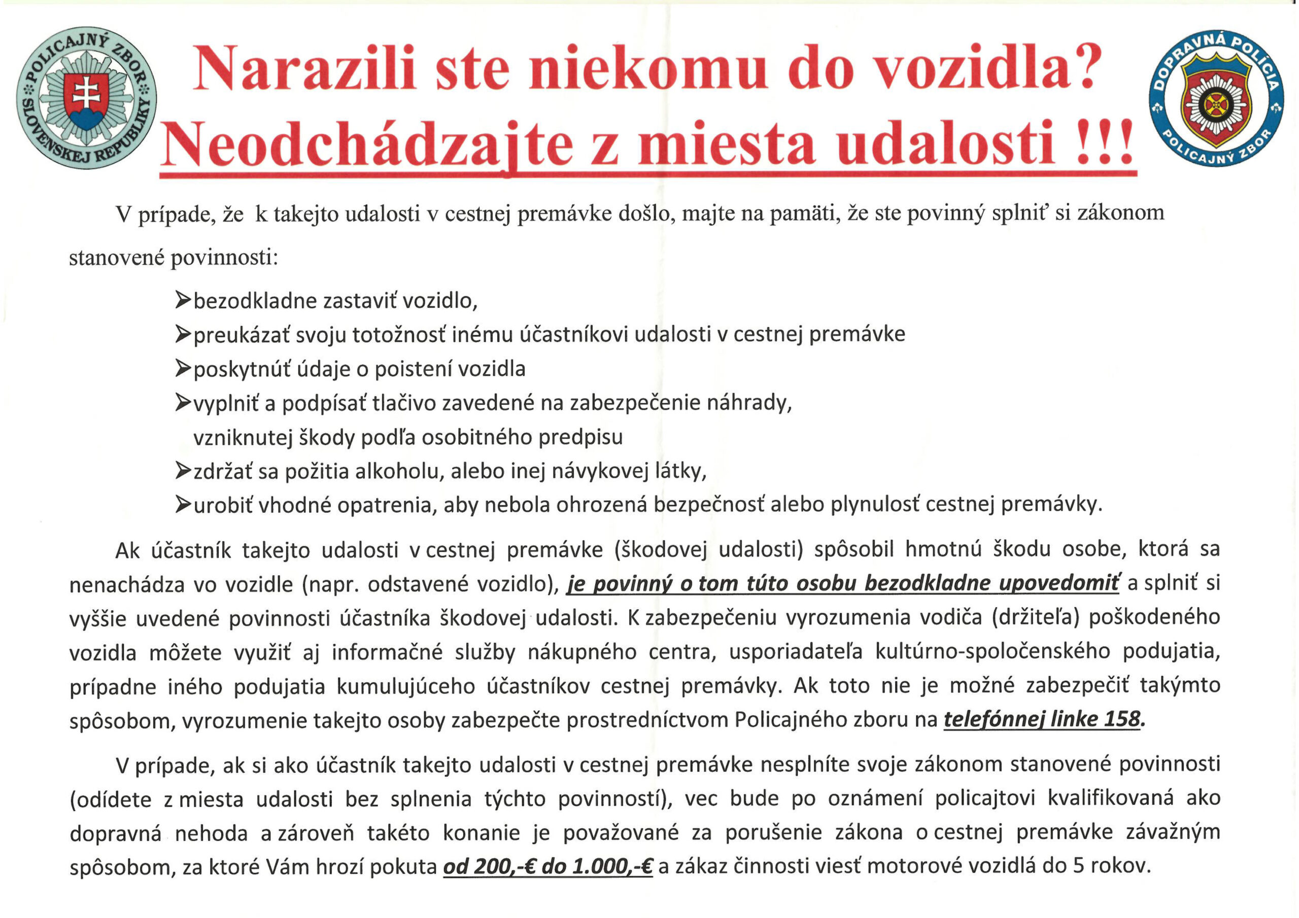 Narazili ste niekomu do vozidla? Neodchádzajte z miesta udalosti!!!